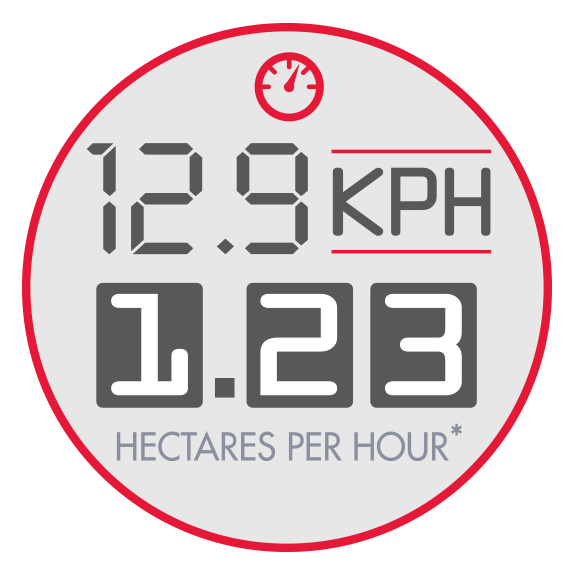 Vitesses de tonte jusqu’à 12,9 km/h et 1,23 hectare/h sur la base d’une largeur de coupe de 107 cm.*