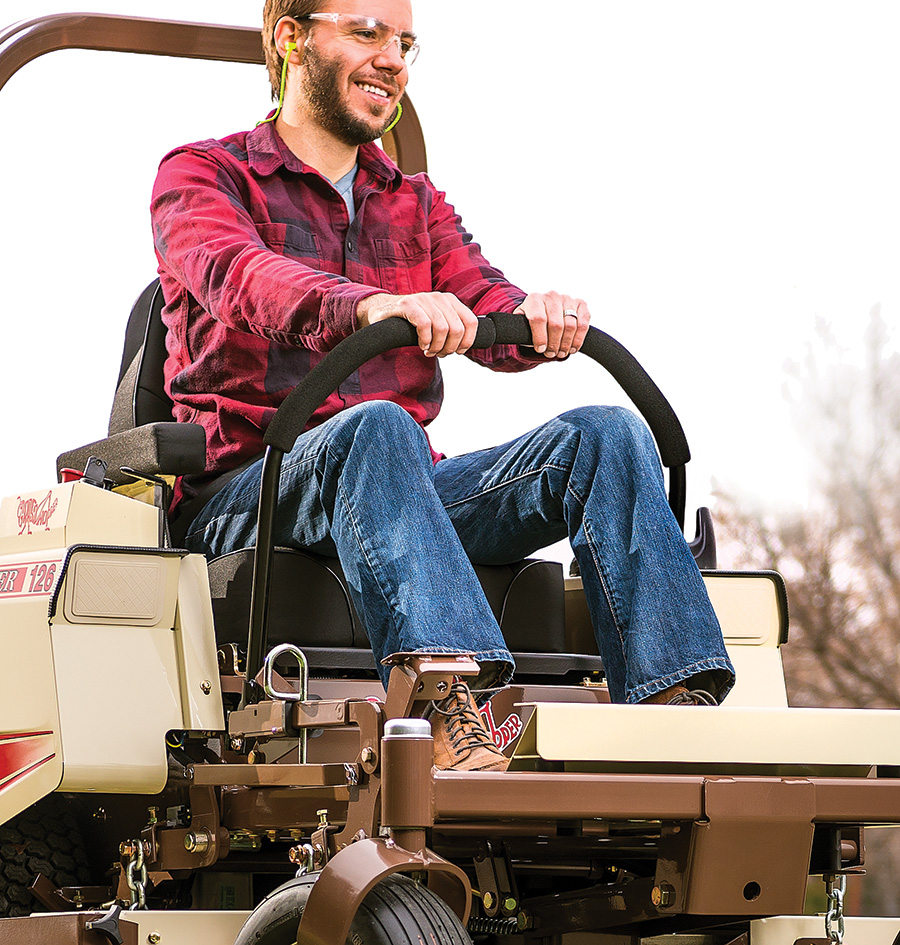 Les commandes opérationnelles, y compris l’accélérateur, le démarreur, la console View-Eze™ inclinée et le porte-gobelet réglable, sont bien positionnées pour la visibilité et la facilité d’accès.