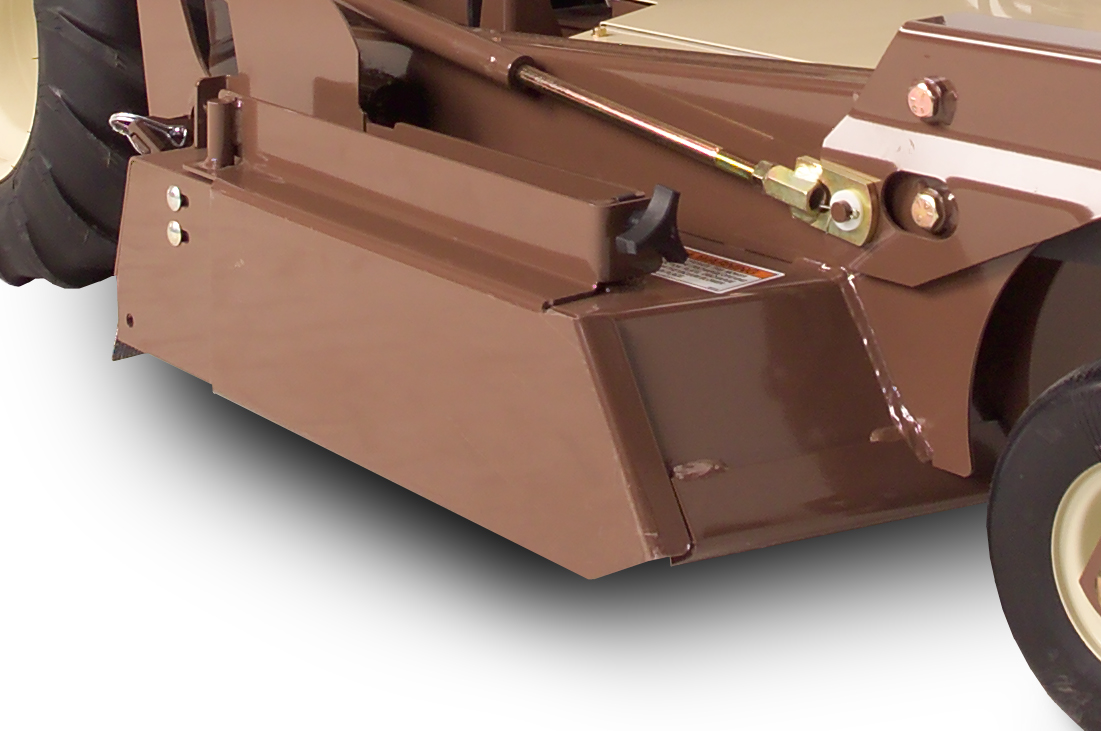 - Le système PowerFold® fait pivoter le plateau à presque 90 degrés pour faciliter l’accès au-dessous du plateau afin de simplifier l’entretien et l’installation du kit de mulching, ainsi que la portabilité et le stockage compact.