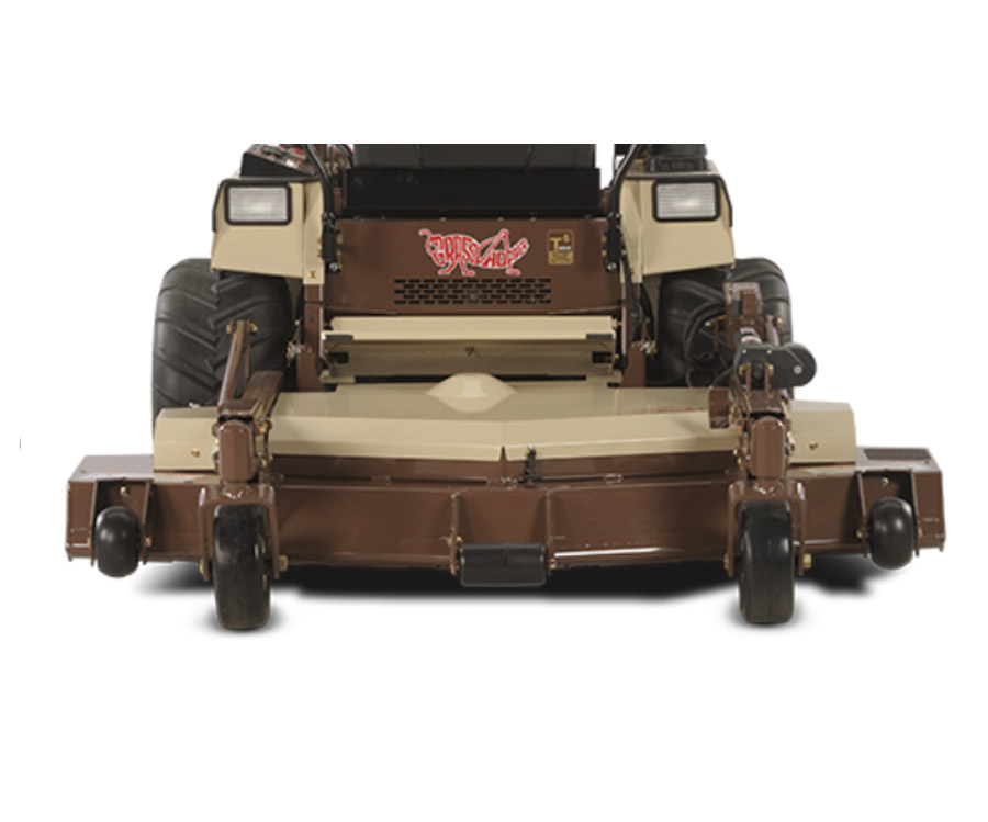 - La conception à roulement centré offre une plus grande capacité de charge pour supporter le poids de l’opérateur, du carburant et du système de ramassage de grande capacité avec une réserve de force pour les amortisseurs de trottoir et les transferts de poids