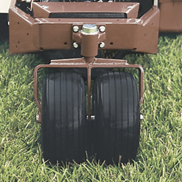 - La conception à roulement centré offre une plus grande capacité de charge pour supporter le poids de l’opérateur, du carburant et du système de ramassage de grande capacité avec une réserve de force pour les amortisseurs de trottoir et les transferts de poids