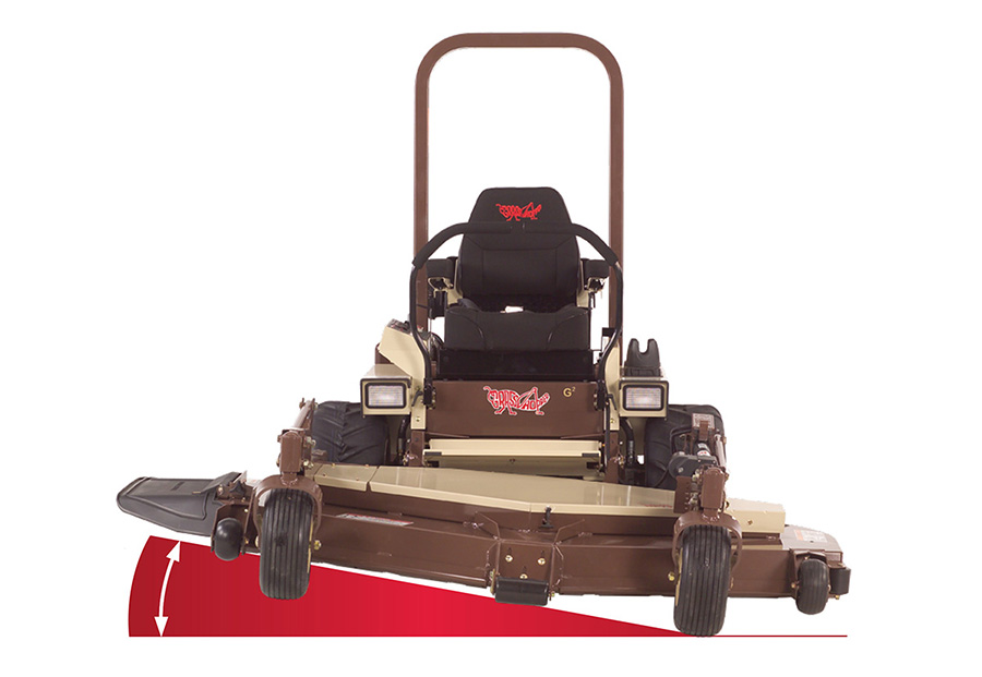 - Transmission hydrostatique G3 robuste avec ventilateurs de refroidissement auxiliaires, pompes à piston HydroGear à cylindrée variable de 21 cm³ et moteurs de roue Parker à couple élevé avec courroie serpentine unique pour un transfert d’énergie plus efficace vers l’entraînement.