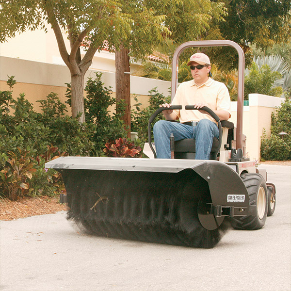 Le rayon de braquage zéro des tondeuses Grasshopper permet aux balais rotatifs CleanSweep entraînés par la prise de force d’aller dans des endroits où les accessoires de balayeuse ordinaires ne peuvent pas aller, accélérant l’enlèvement des débris et de la neige dans les zones habitées ainsi que le long des longs tronçons de trottoirs, d’allées et de bordures, et même des patinoires de hockey d’extérieur.