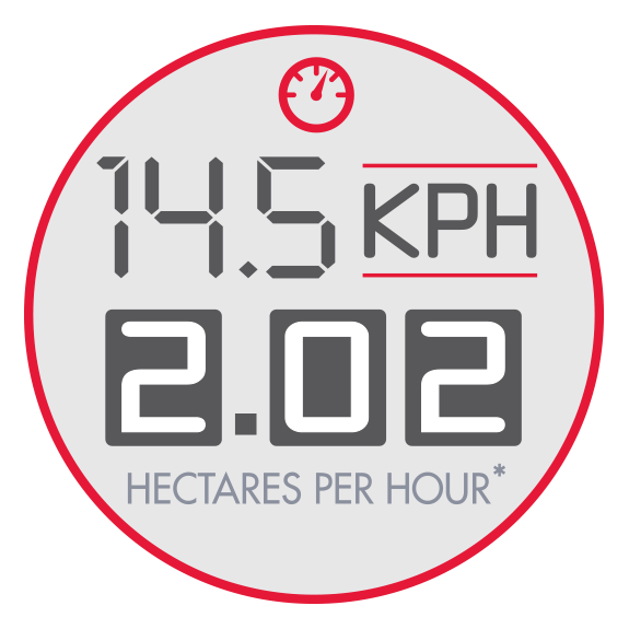Vitesses de tonte jusqu’à 14,5 km/h et 2,02 hectares/h sur la base d’une largeur de coupe de 155 cm.*