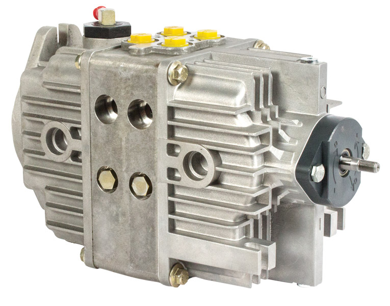 - La transmission avec deux pompes (immergées dans un réservoir d’huile) Parker de 12 cm³ est spécialement conçue pour l’entretien des gazons