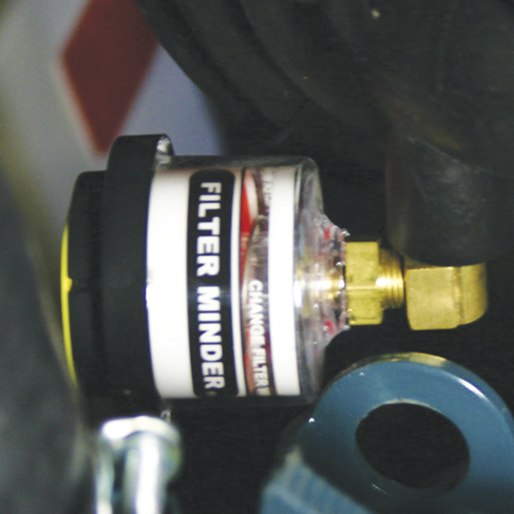 Le témoin de filtre avertit l’opérateur lorsque le débit d’air diminue dans le boîtier du filtre à air à deux étages.
